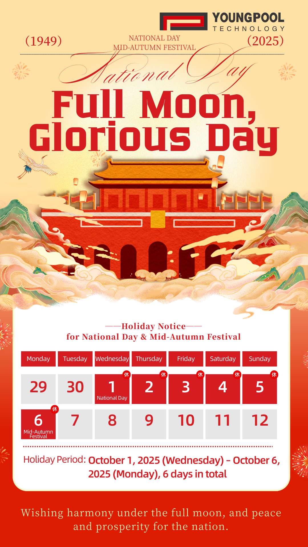 في احتفال المهرجان المزدوج هذا، ينضم جميع موظفي Youngpool Technology معًا ليتمنوا: